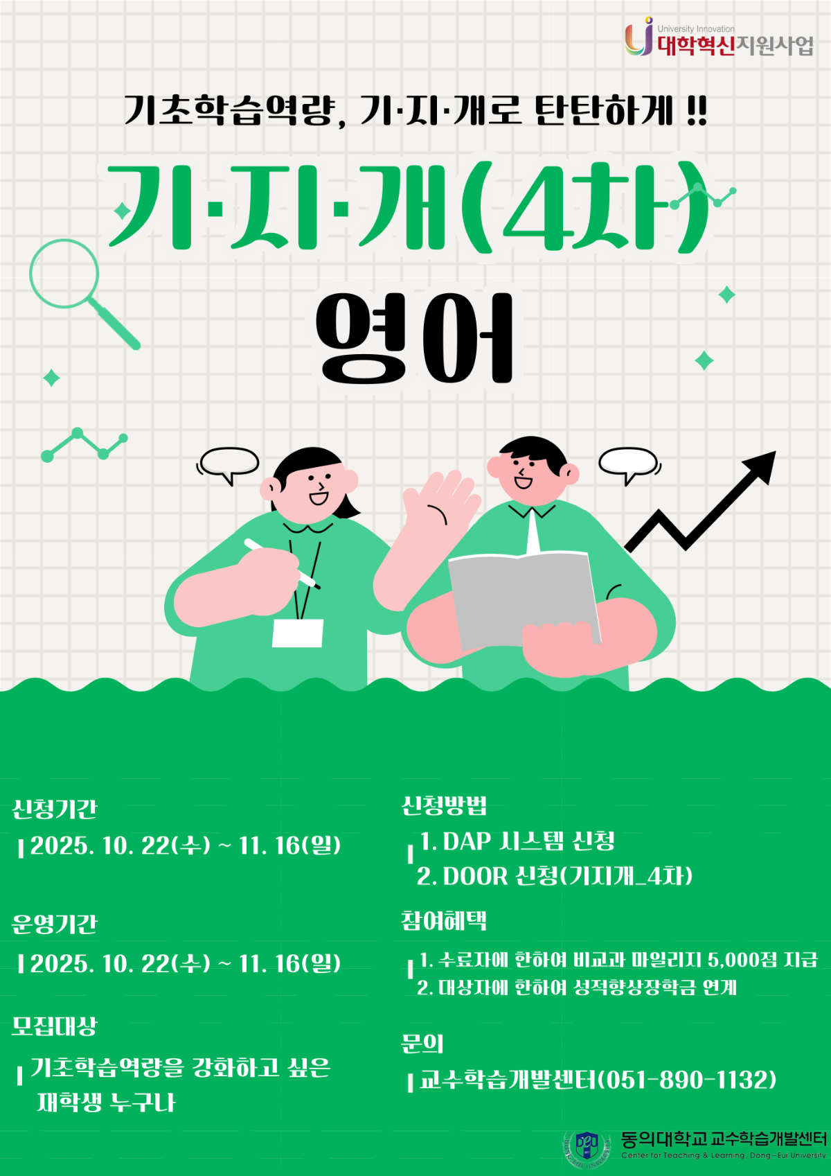 [대학혁신지원사업] 2025학년도 기·지·개(기초학문 지식 개선) 4차 신청 안내